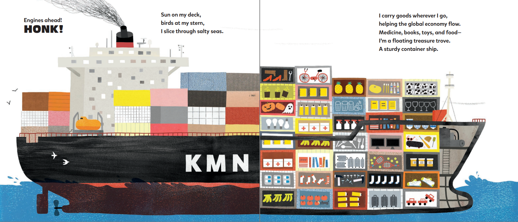 “This is bliss for any child who loves boats, for units on global transportation, or for anyone who has ever asked how this all works.”—School Library Journal, 24 November 2023