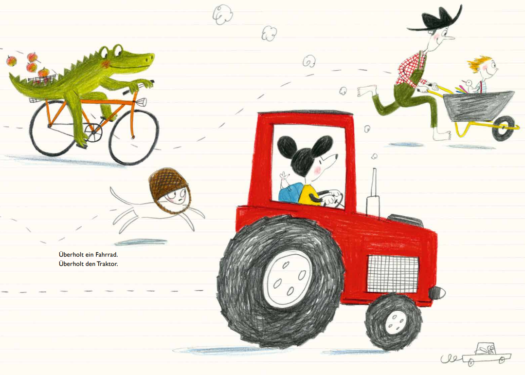 “… an adventurous journey over hill and dale and across the pages of a book … The interactive effect, achieved by turning or lifting the book, is the highlight of this witty story.” – Eselsohr