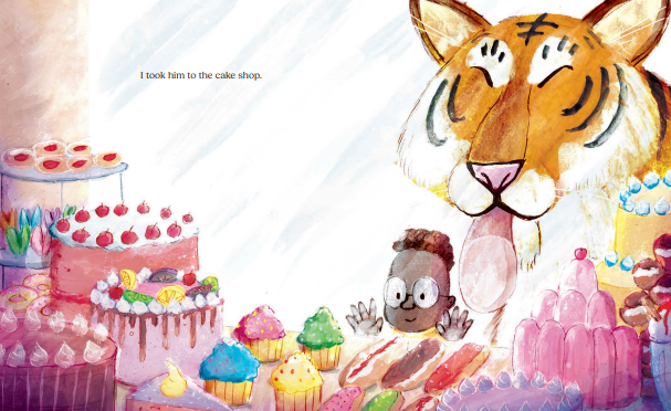 My tiger loved cake, and I went with him to the cake shop. Then he got