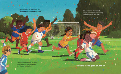Follow a fast-paced soccer game around the globe, moving to a new location with each turn of the page. The game includes early morning in Chicago, USA; a nighttime matchup in Shenzhen, China; an early evening game in Kochi, India; and a midafternoon match in Lagos, Nigeria. Journey through time zones and around the globe as kids everywhere use their feet to dribble, shoot, and score all the way through to the final goooooooooal!